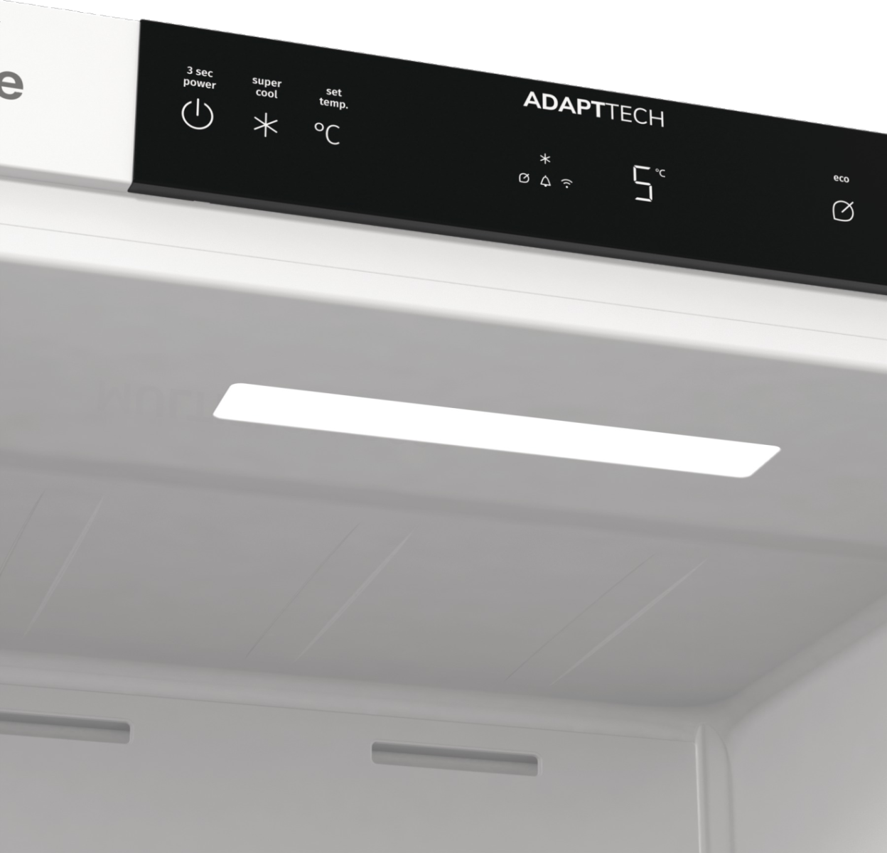 La fonction de refroidissement intensif abaisse significativement la température du compartiment réfrigérateur pour refroidir rapidement les aliments après de grosses courses. Au bout de six heures, la fonction s’arrête automatiquement et la température du réfrigérateur revient à son réglage initial.